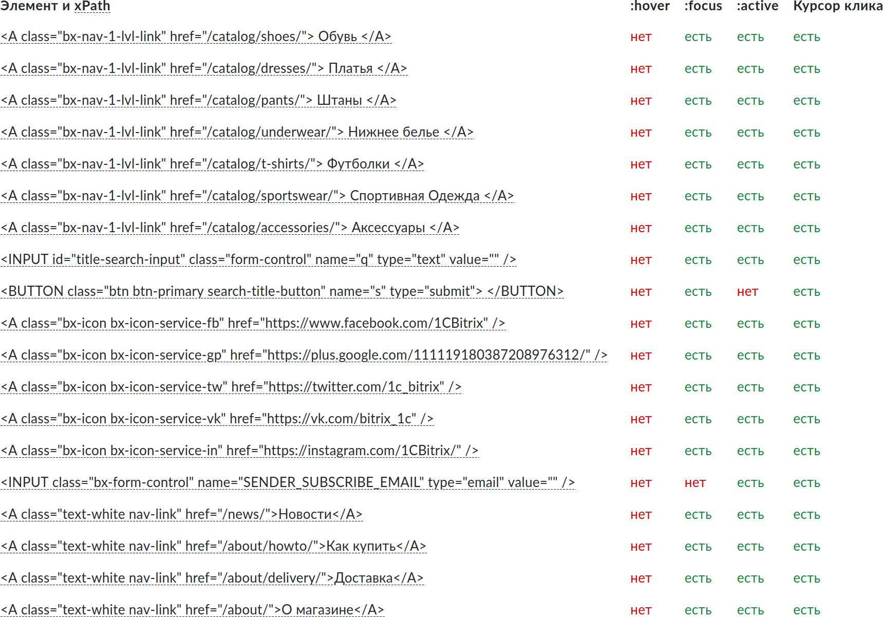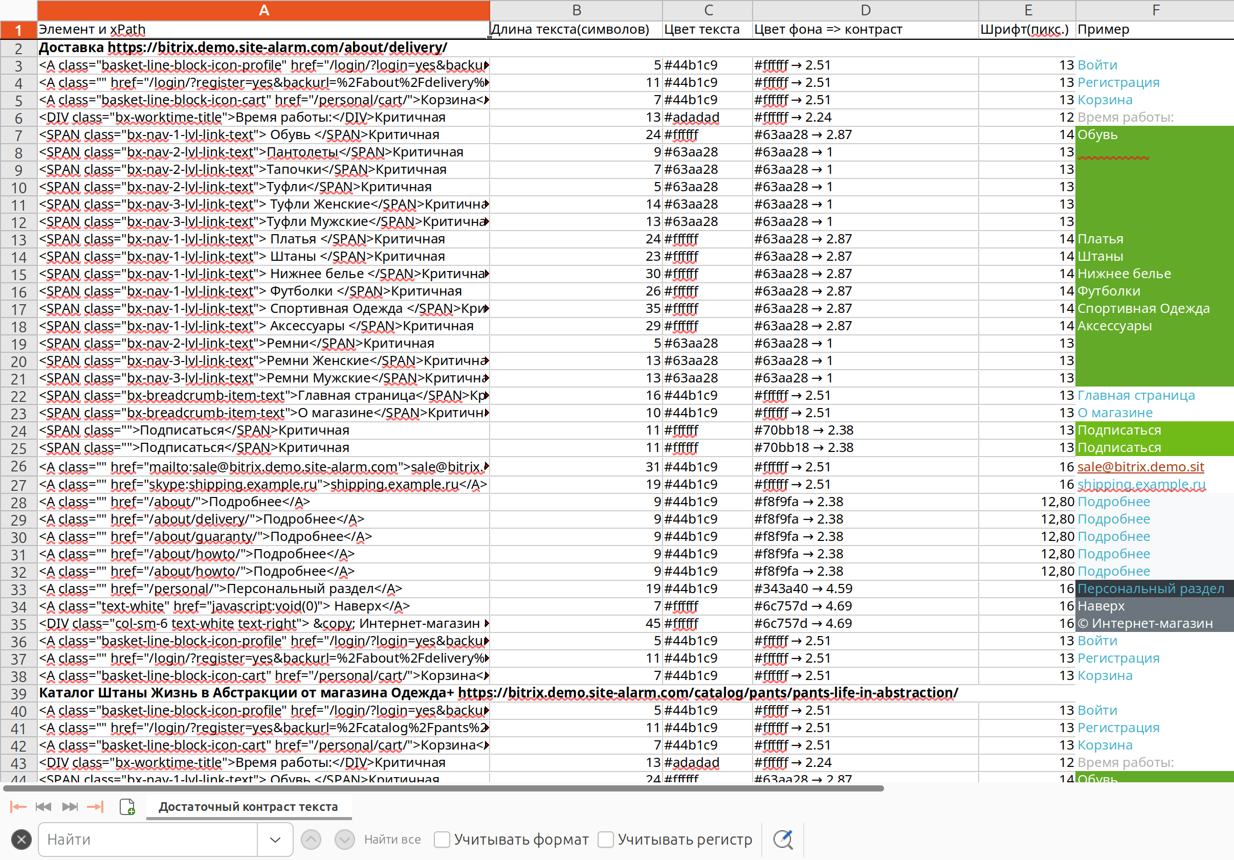 Availability of bread crumbs, contacts on the site.